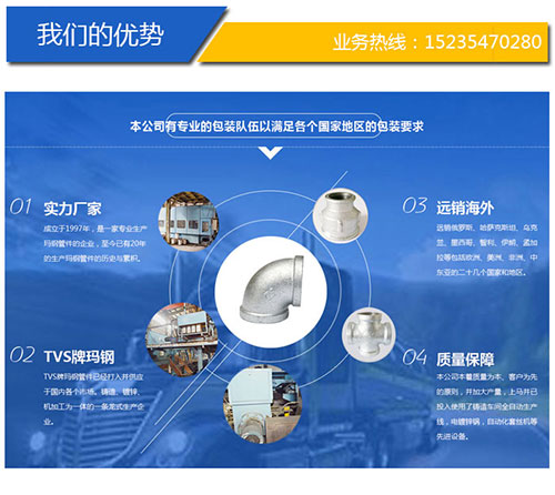 太谷繼紅瑪鋼鑄造有限公司是一家專業生產瑪鋼管件的企業,至今已有20年的生產瑪鋼管件的歷史與累積。本公司在出口外貿瑪鋼管件方面尤其專業并具有相當大的優勢,長年生產的德標管件、美標管件、英標管件遠銷俄羅斯,伊朗,墨西哥,孟加拉,埃及,哈薩克斯坦,烏克蘭,智利等.包括歐洲、美洲、非洲、中東亞的二十幾個國家和地區。